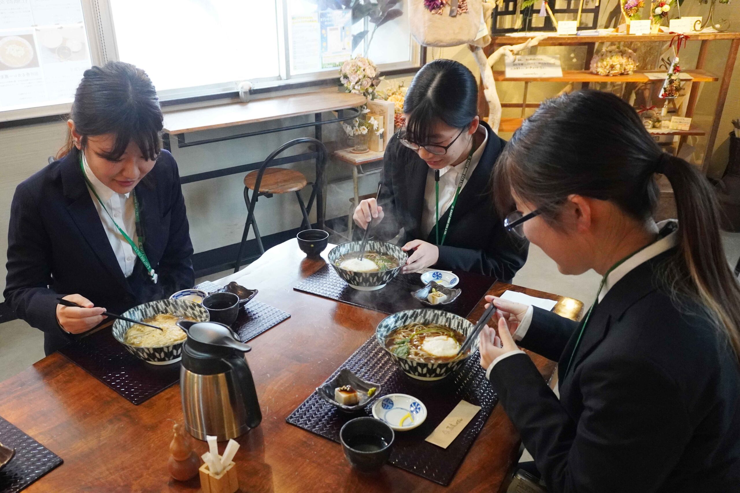 昼食は鴨南、とろろ蕎麦など、みなさん温かいお蕎麦を注文しました。