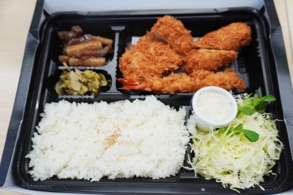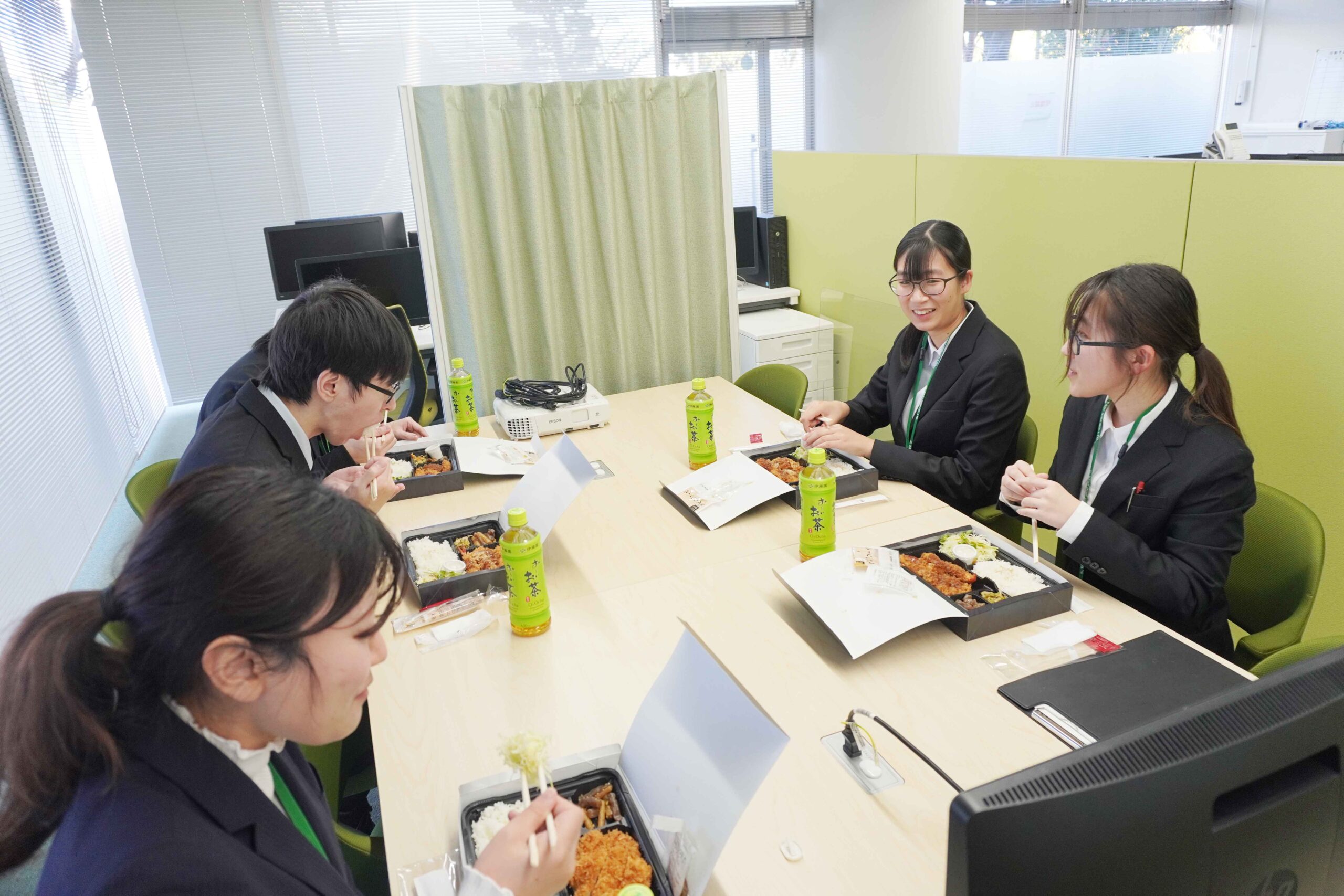 あっという間に昼食となり、最終日は当社の打ち合わせスペースにて濱かつのお弁当をいただきました。
