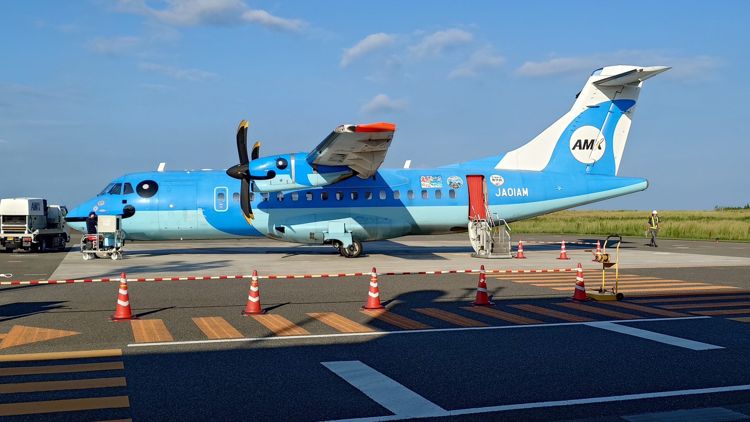 こちらのかわいらしいイルカがデザインされた飛行機は「みぞか号」といって、「みぞか」は天草市の方言で「かわいい」を意味するそうです。