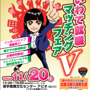 続きを読む令和3年11月20日(土)に、岩手産業文化センターアピオで開催される『いわて就職マッチングフェアⅤ』に出展いたします。岩手県での就職(UIJターンを含む)をご検討の方、イーストライズへ入社をお考えの方は是非足をお運びくだ ...