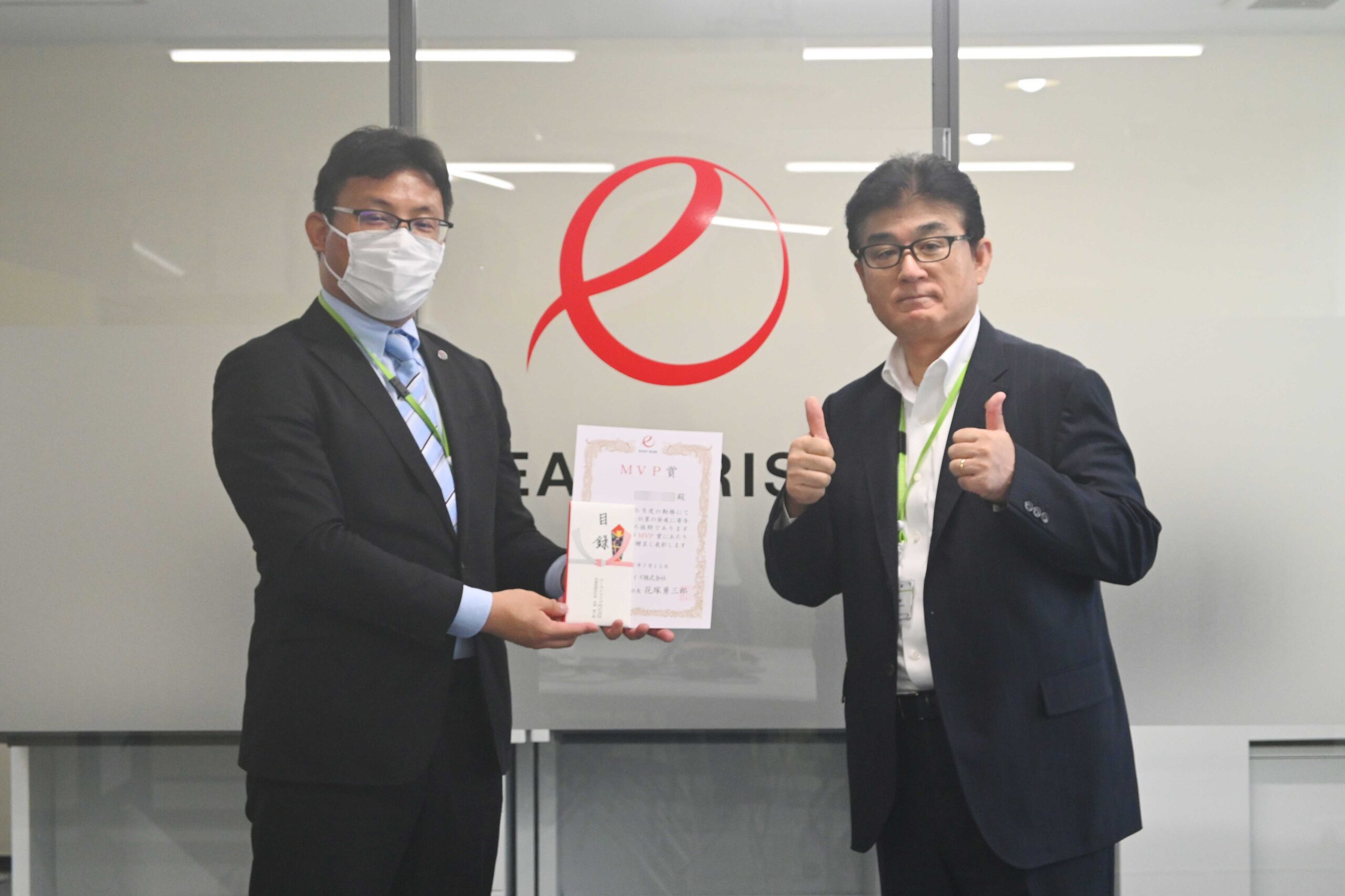 今回のMVP賞には、営業施策の一環である重要案件を獲得し実績を挙げたM係長と、お客様プロジェクトにて高い評価をいただいたシステムエンジニア、Cさんのダブル受賞となりました。