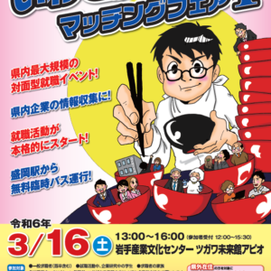 続きを読む令和6年3月16日(土)に岩手産業文化センターツガワ未来館アピオで開催される『いわて就職マッチングフェアⅠ』へ出展いたします。岩手県での就職(UIJターンを含む)をご検討の方、イーストライズへ入社をお考えの方は是非足をお ...
